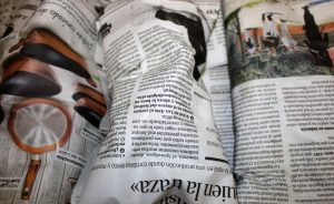 Envolver en papel de periódico, las berenjenas por un lado, el pimiento por otro y la cebolla en otro paquete.