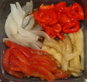 Los que vamos a utilizar para la escalivada cortarlos en tiras y guardarlos en la nevera hasta su utilización.