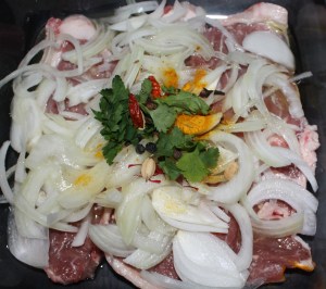 Retirar el cordero de la cazuela donde lo hemos macerado. Recuperar todos los líquidos de maceración. Colarlos. En este aceite dorar el cordero.