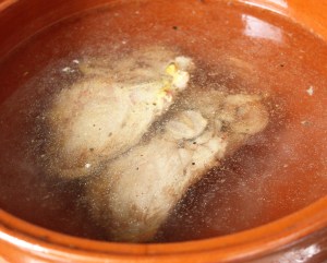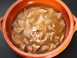 Dejar cociendo a fuego bajo y tapado durante 2 horas, hasta que el cordero quede muy tierno al pincharlo.