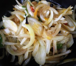 Media cebolla cortada en juliana