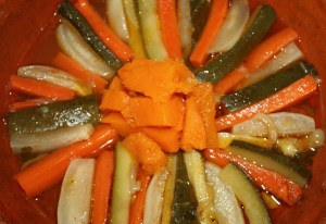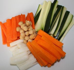 Cortar todas estas verduras en bastones grandes.