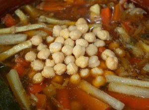 Este es un plato berber, del norte de África. El cous cous más tradicional se hace con sémola de trigo, cordero, garbanzos, verduras y especias. Hay muchísimos tipos de cous cous, dulces con cebolla y pasas, de pollo, solamente con verduras…..
