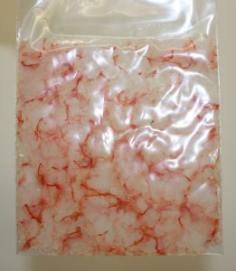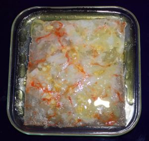 Poco antes de comer sacarlas del congelador, recortar los bordes de la bolsa y quitar el plástico de manera que nos queden cuadrados de carpaccio. Colocar sobre un plato y dejar que se descongele.
