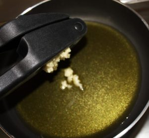 En una sartén con abundante aceite freír ajo picadito.