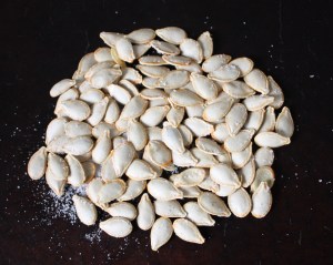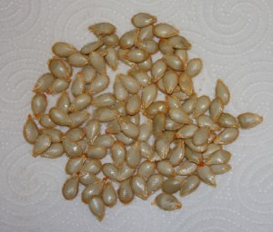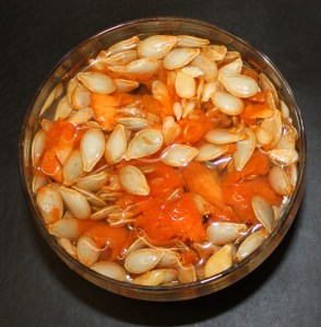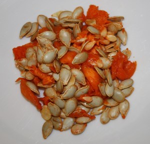 Si utilizamos una calabaza, como por ejemplo nosotros hemos hecho en la receta de las albóndigas de pollo, no se os ocurra tirar las semillas o pepitas.