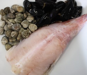 El arroz que vamos a hacer hoy es un arroz caldosos con caldo de pescado, rape, chirlas y clóchinas. Si queréis también le podéis poner unas gambas.