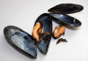 - Normalmente en los supermercados se compran los moluscos en mallas. Yo he comprado una malla de clóchinas de 600g pero solamente voy a utilizar 15 piezas. El resto las haremos para picar. Las clóchinas son un molusco del mediterráneo muy parecido a los mejillones pero más blanquecinos y de menor tamaño. A mi me encantan pero los podéis sustituir por mejillones.