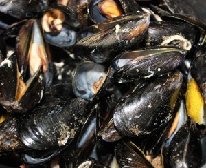 Clóchinas: limpiarlas por fuera rascando con un cuchillo. Eliminar las barbas tirando de ellas hacia la parte superior de la concha. Colocarlas en una cazuela con un limón cortado en trozos y bolas de pimienta negra. También podéis añadir una cucharada de pimentón dulce o un poco de mostaza. Los trozos de limón exprimirlos con la mano para que suelten todo su jugo. Tapar la cazuela, a fuego fuerte y en cuanto se abran, unos 3-4 minutos apagar el fuego y… A COMER!!!!