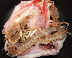 Dorar en una sartén con el aceite, los huesos de rape, las galeras y cangrejos, durante 5 minutos.