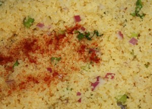 - Dos cucharaditas de sal, una para cocer el cous cous y otra para aderezar