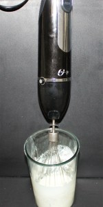Batir ligeramente la nata, reservando un poco para disolver en ella la gelatina.