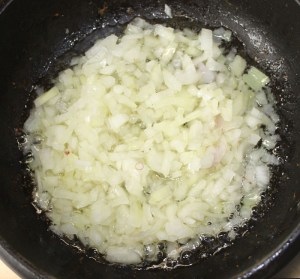 Rehogar una cebolla picada con cuatro cucharadas de aceite, a fuego suave.