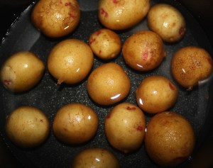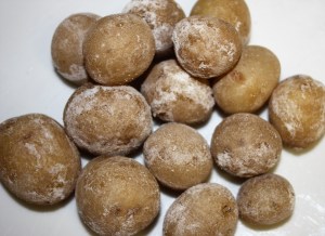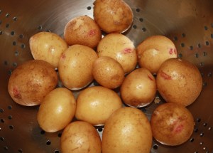Yo he utilizado unas patatas pequeñas que se llaman de arena porque se cultivan en arena de playa. Lo podéis hacer con cualquier patata pequeña que encontréis. Normalmente en los supermercados no suele haber, es más fácil encontrarlas en el mercado.
