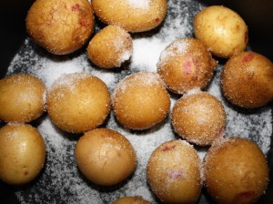 Agitar el cazo para que las patatas se impregnen bien de sal y LISTO!!!