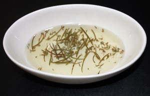 En un bol poner el aceite con las hojitas del romero y tomillo. Dejar macerando unas dos horas.