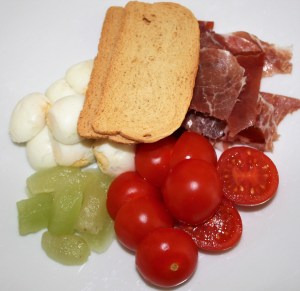 También lo podéis servir como una tapita. En un vaso poner el tomate con unas gotas de aceite virgen y unas escamas de sal, encima una tostada con jamón y sobre él media uva, medio huevo de codorniz y medio tomate cherry o tomate a cuadaraditos. Acabar con un chorrito de aceite virgen extra y unas escamas de sal.