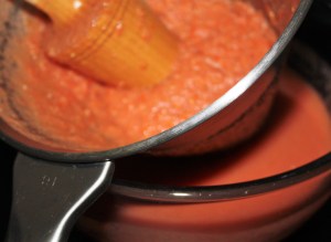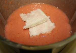 Si se queda demasiado líquido añadir la otra media rebanada y triturar junto con el aceite virgen y la sal.