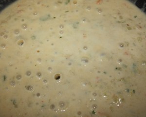 Incorporar una cuchara de harina. Mover 2 minutos y listo.