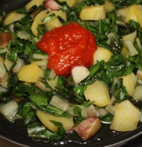 Cuando las patatas empiecen a estar blanditas, añadir las acelgas.