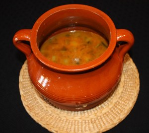 En un puchero de barro (o metálico, si no tenéis), poner agua fría ( muy importante, porque si no está fría al principio, no se cuecen las habichuelas ) sin sal y añadir las alubias que ya estarán crecidas. Si nos hace falta más agua siempre se añade fría.
