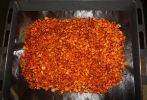 Cada 5 minutos abrir el horno y con un tenedor desmenuzar los trozos que nos hayan quedado muy grandes.