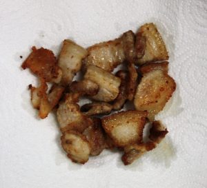 Poner la panceta sobre papel de cocina para eliminar el exceso de grasa.
