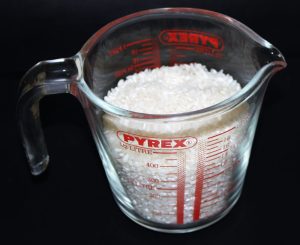Poner el arroz en una jarra para tener la medida, pondremos el doble de cantidad de caldo.