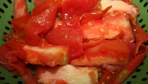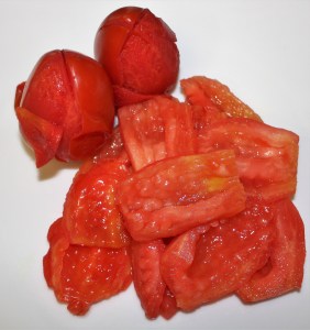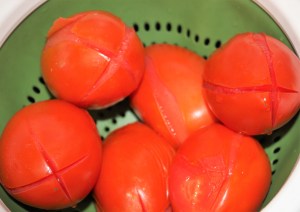 A los tomates les hemos hecho una cruz en la base de manera que nos será facilísimo pelarlos.