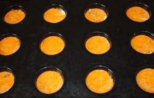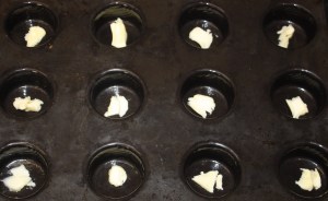 En unos moldes de silicona poner un pellizquito de mantequilla. Meter en el horno a 150º.