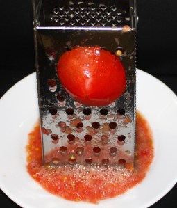 Llega el momento de añadir el tomate rallado y el azúcar. 10 minutos a fuego medio. El tomate contiene mucha agua y queremos que se evapore. No paréis de remover.