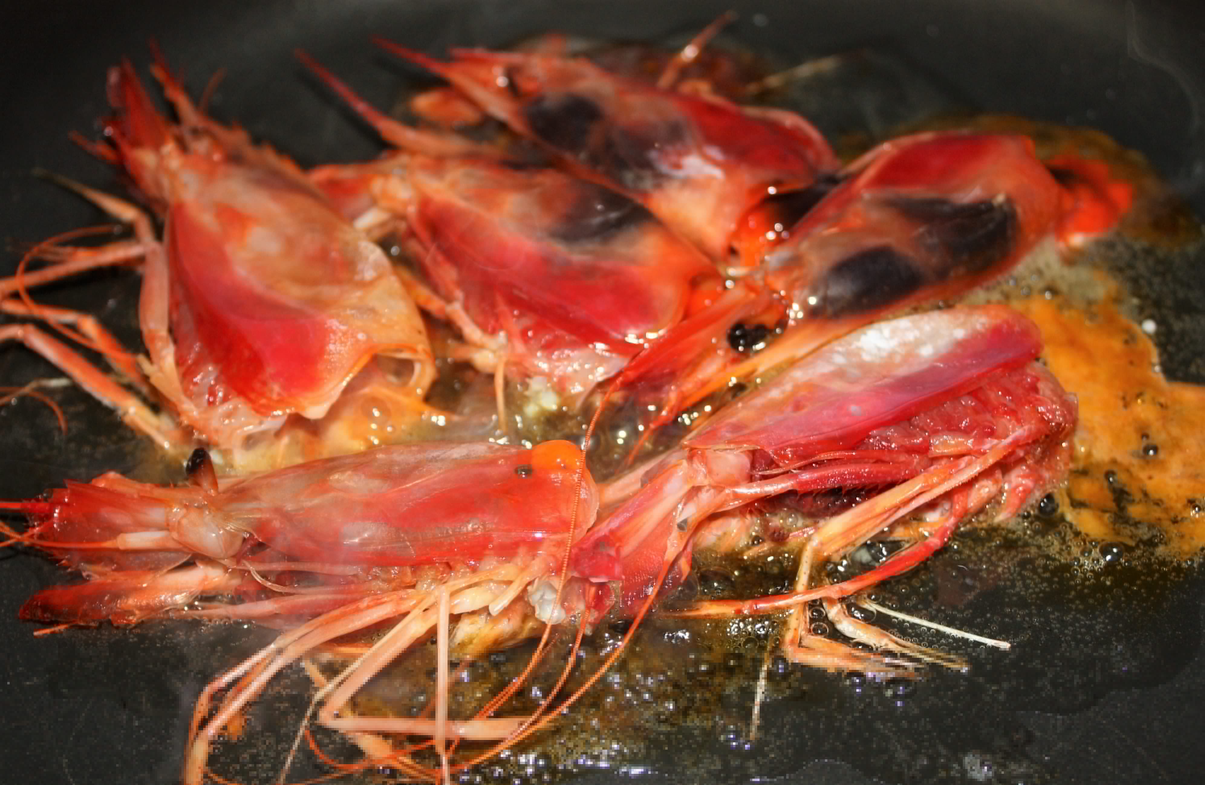 Para terminar incorporar los cuerpos de las gambas. Una vuelta y listo, si se hacen demasiado quedan muy secas.