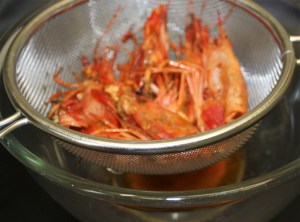 Colar para recuperar todo el aceite sin bigotes de las gambas.