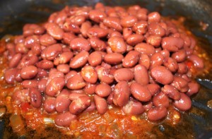 Poner los frijoles previamente escurridos. Dos minutos mezclando bien todos los ingredientes.