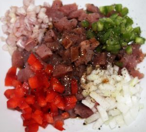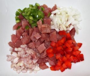 Cortar el atún en pequeños dados.