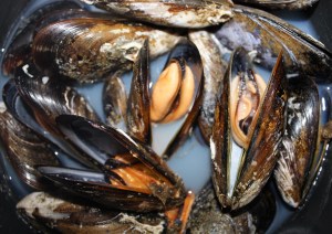 Con un kilo de mejillones hemos obtenido 250ml de caldo. Reservar dos por persona y el resto congelarlo para hacer por ejemplo mejillones en escabeche.