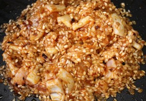 Dar unas vueltas e incorporar el arroz.