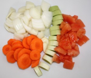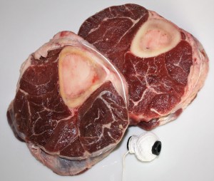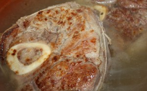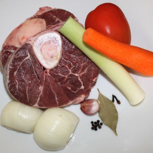 Consiste en un guiso de carne y verduras. La pieza de carne conocida como osobuco, es el jarrete de ternera, corte transversal del corvejón de la res. Utilizaremos cortadas de 2 cm de grosor de la parte final de la pierna de la vaca.