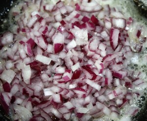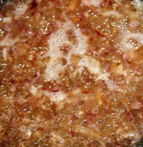 Incorporar el vino blanco. Subir el fuego para que se evapore el alcohol.