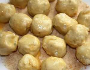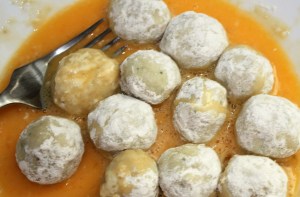Huevo batido. Ayudaros de un tenedor para impregnarlas bien.