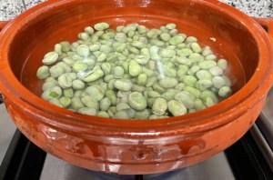 Si las habas son frescas, las pelamos y sofreímos en una sartén con aceite que las cubra, a fuego suave y tapadas, hasta que estén tiernas.