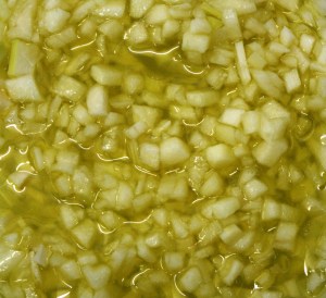 Cortar la manzana y la cebolleta en dados pequeños.