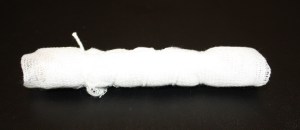 Enrollar el palo de canela con la gasa y atarlo con el hilo. Queremos que deje todo su sabor pero no virutitas.