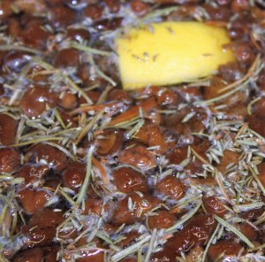 Para un bote de 500 ml utilizaremos los 250 g de setas, 1 hoja de laurel, 6 granos de pimienta negra, un puñado de tomillo y romero y…