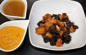 Dejar macerando los orejones, ciruelas, pasas, canela, piel de limón, azúcar moreno, zumo de manzana y un chorrito de Pedro Ximenez.