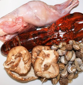 Este es un guiso conocido como mar y montaña, ya que, como su nombre indica se elabora con ingredientes del mar y la montaña. En esta receta vamos a utilizar bogavante y conejo. Como a mucha gente el conejo no le gusta lo podéis sustituir por pollo y el bogavante por cigalas o gambas.