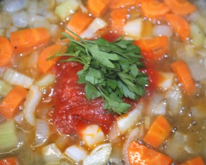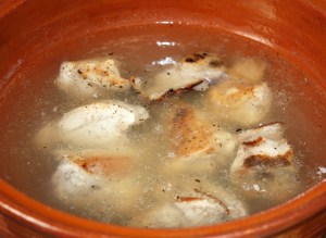 Añadir a la cazuela y dejar cociendo hasta que el conejo esté tierno. Más o menos una hora y media, dependiendo del conejo. Lo podéis hacer en la olla rápida en sólo 20 minutos pero desde luego el resultado no es el mismo.