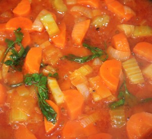 Otra vez en la misma sartén, que es una campeona, añadir la cebolla, zanahoria y apio. A fuego medio 5 minutos. Mover no se os queme. Añadir el vino blanco y dejar que evapore el alcohol, unos 5 minutos a fuego fuerte.