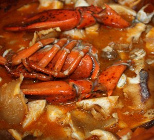 Añadir el bogavante, setas troceadas y caracoles. 5 minutos a fuego medio y listo.