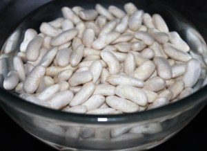 En una olla, si es de barro mejor, colocar las fabes con agua fría que las cubra unos dos dedos. Fuego fuerte.